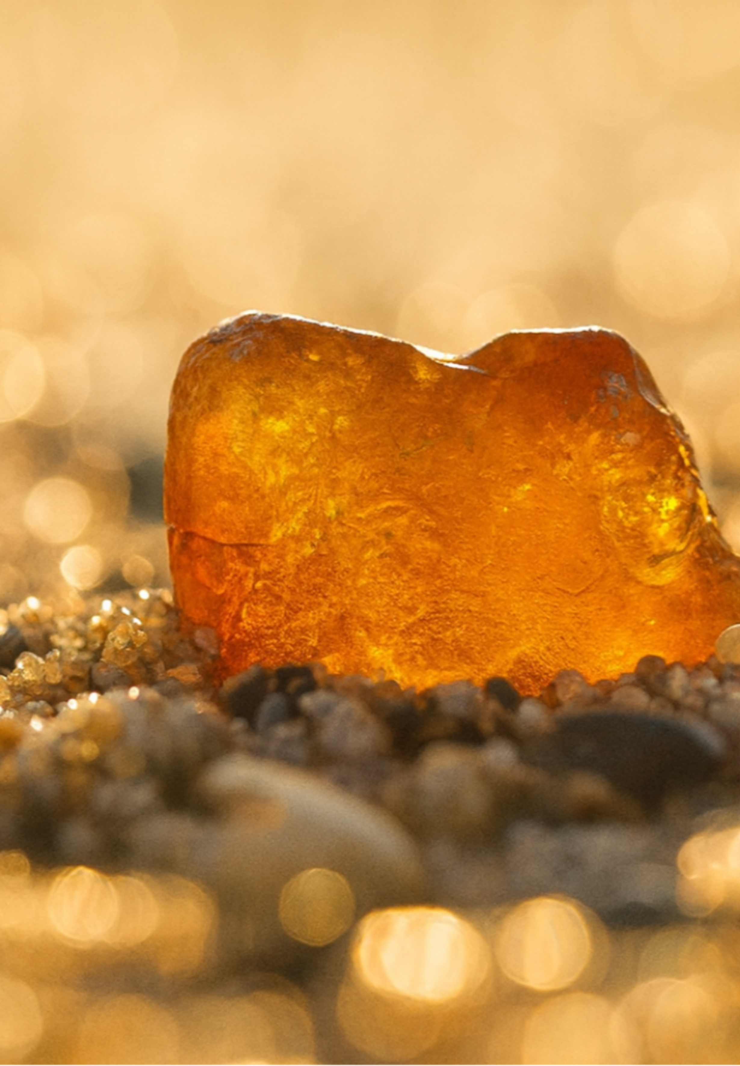 Barnsteen (amber) is de warmte van de zon, gevangen in steen. Eeuwenlang werd het gekoesterd omdat het emotionele balans brengt, de geest beschermt en het leven vult met licht. Dicht op de huid gedragen, absorbeert het negativiteit en straalt het kalme, opbeurende energie uit.