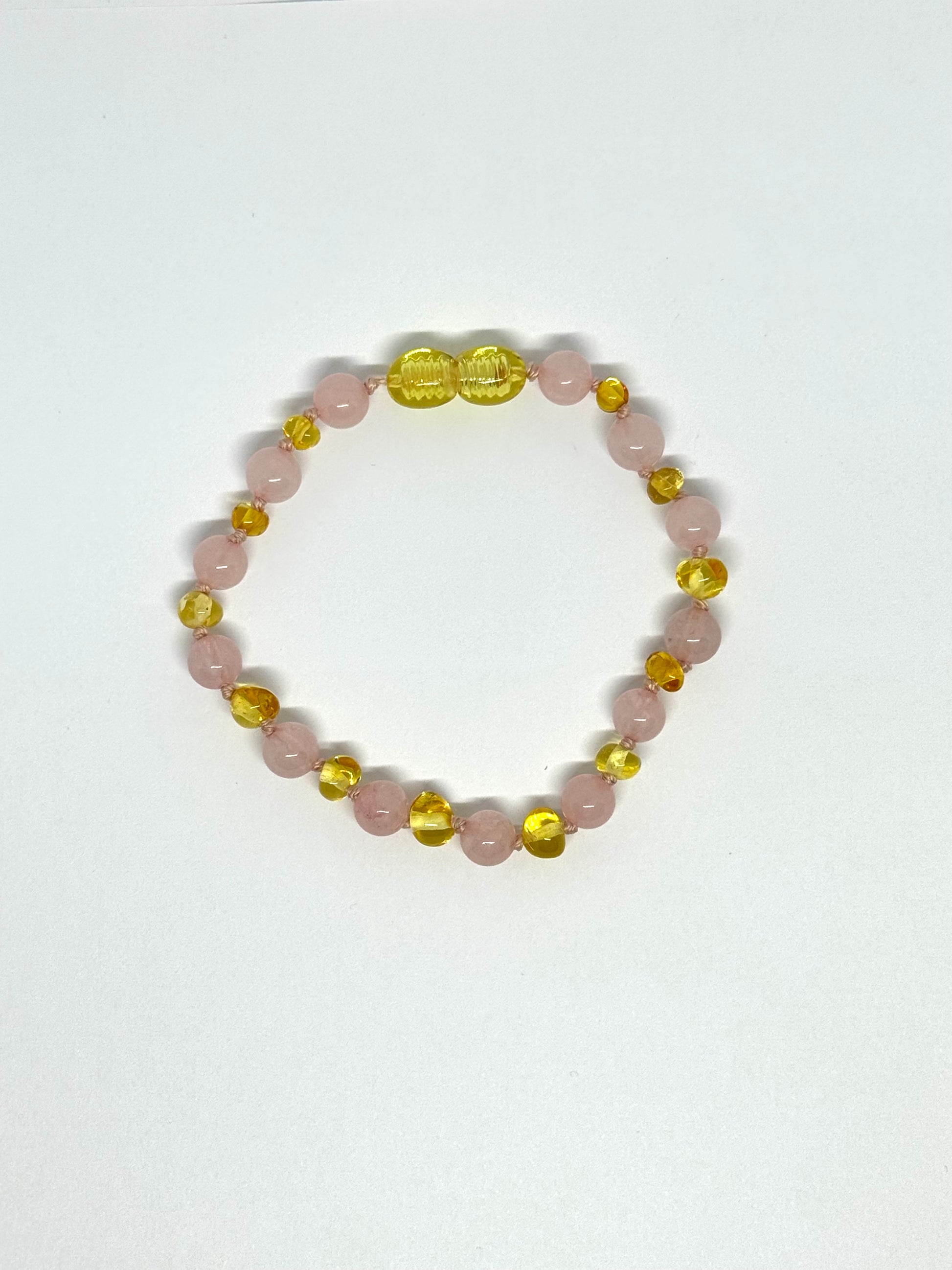 Barnsteen & Natuursteen Armband/Enkelband - Honing & Rozenkwarts (18-20cm)