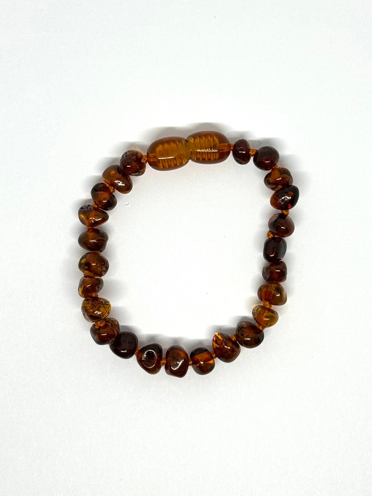 Handgemaakte barnsteen armbandje met veilige sluiting.