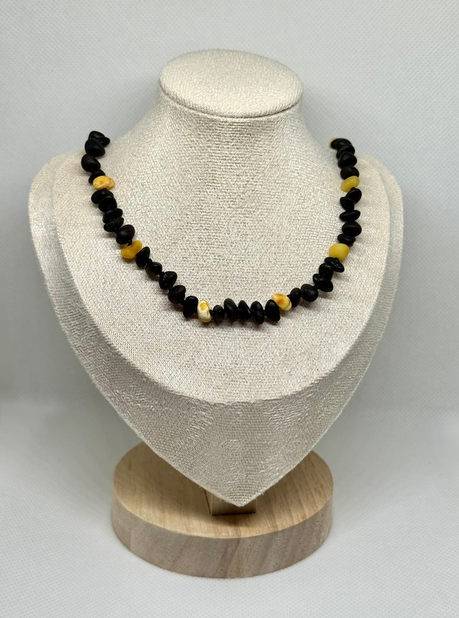 Ruwe Barnsteen Ketting - Zwart & Boter (46 cm)